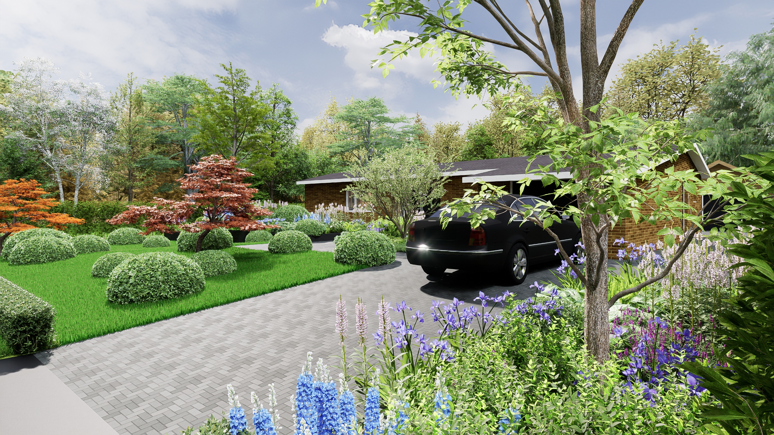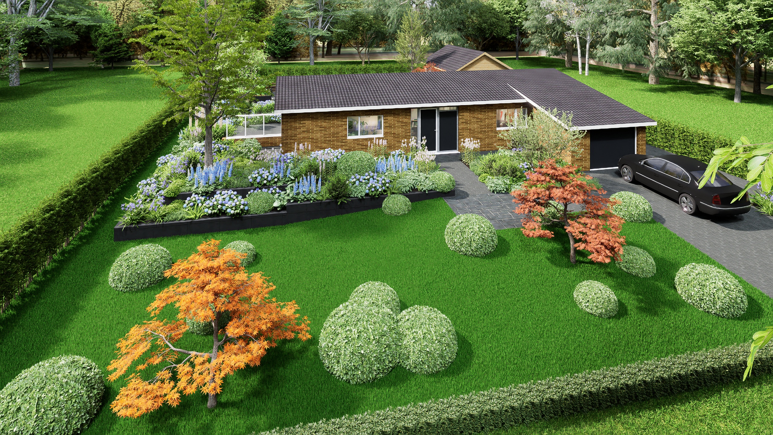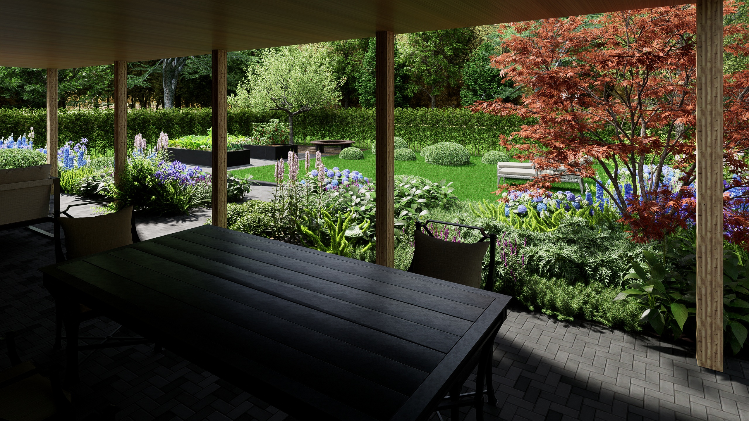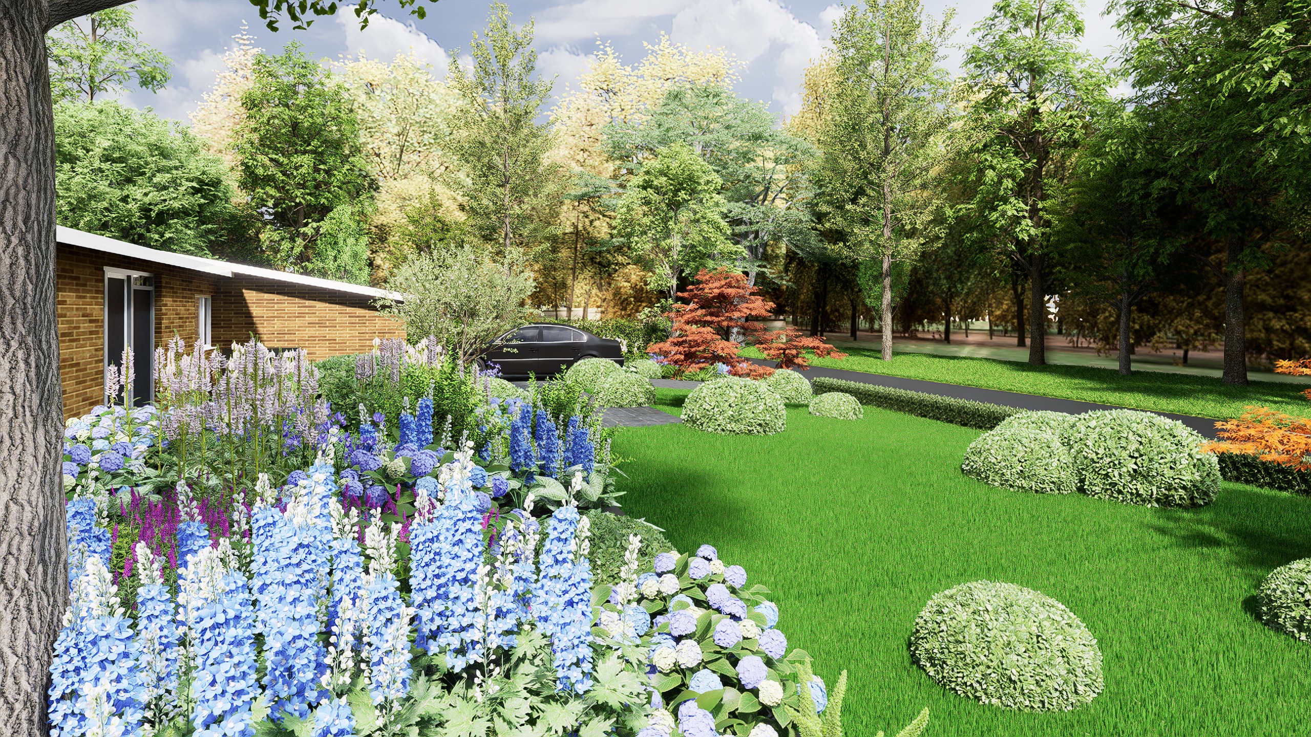 In deze tuin hebben we gewerkt met verhoogde plantenbakken en duidelijke hoogteverschillen voor extra diepte en structuur.